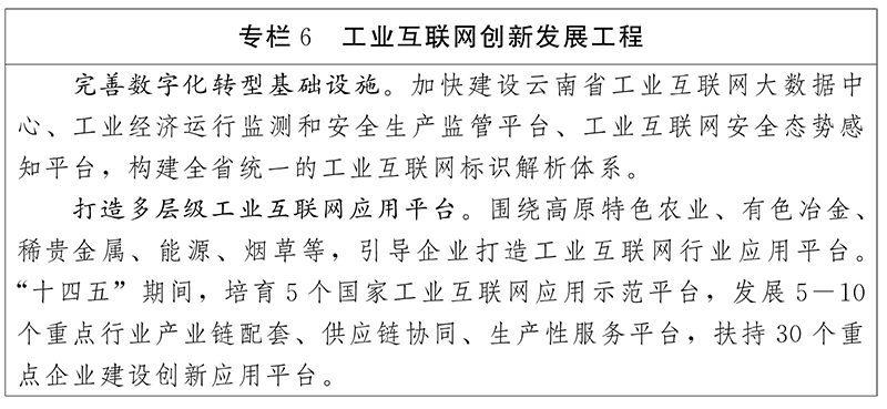 推進工業(yè)互聯(lián)網(wǎng)平臺建設(shè)。構(gòu)建云南省工業(yè)互聯(lián)網(wǎng)大數(shù)據(jù)中心,全面支撐工業(yè)經(jīng)濟運行監(jiān)測和安全生產(chǎn)監(jiān)管。引導(dǎo)省內(nèi)重點企業(yè)建設(shè)煙草、鋼鐵、有色、能源等優(yōu)勢產(chǎn)業(yè)工業(yè)互聯(lián)網(wǎng)應(yīng)用平臺,承載設(shè)備連接、匯聚數(shù)據(jù)資源、支撐應(yīng)用開發(fā)。重點培育國家工業(yè)互聯(lián)網(wǎng)應(yīng)用示范平臺,發(fā)展一批重點行業(yè)產(chǎn)業(yè)鏈配套、供應(yīng)鏈協(xié)同、生產(chǎn)性服務(wù)平臺。