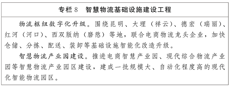 加強融合基礎(chǔ)設(shè)施開放共享。深入推進互聯(lián)互通國際大通道建設(shè)同數(shù)字技術(shù)發(fā)展深度融合。積極打造面向南亞東南亞國家物流樞紐,完善跨境物流服務(wù)體系,提升貿(mào)易便利化水平。深入推進跨境電商平臺建設(shè),鼓勵“互聯(lián)網(wǎng)+邊境商貿(mào)”業(yè)態(tài)發(fā)展。