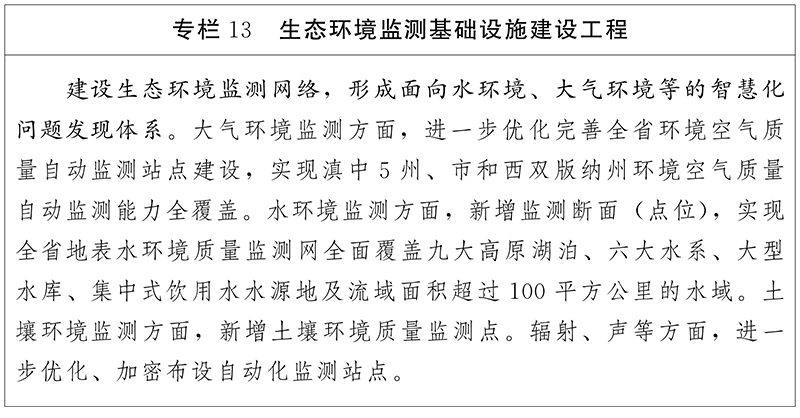 建設(shè)數(shù)字環(huán)?;A(chǔ)設(shè)施,運用無人機、地面自動監(jiān)測等手段,加強生態(tài)環(huán)境監(jiān)測網(wǎng)絡(luò)建設(shè),在州、市、縣、區(qū)行政區(qū)域內(nèi)以及國家級、省級重點工業(yè)園區(qū)內(nèi)新建一批大氣環(huán)境監(jiān)測點、水質(zhì)斷面監(jiān)測點、水質(zhì)自動監(jiān)測站、土壤環(huán)境質(zhì)量監(jiān)測點與輻射、聲等環(huán)境監(jiān)測點。打造生態(tài)環(huán)境大數(shù)據(jù)體系,推進生態(tài)環(huán)境保護決策科學(xué)化、智慧化。建設(shè)智慧自然資源基礎(chǔ)設(shè)施,建立自然資源數(shù)據(jù)采集、管理、更新長效機制,構(gòu)建全省統(tǒng)一的智慧自然資源大數(shù)據(jù)體系。整合、治理、完善現(xiàn)有時空數(shù)據(jù)資源,規(guī)范全省時空數(shù)據(jù)基準,建立全省自然資源與地理空間數(shù)據(jù)庫,健全時空數(shù)據(jù)管理和更新維護機制。