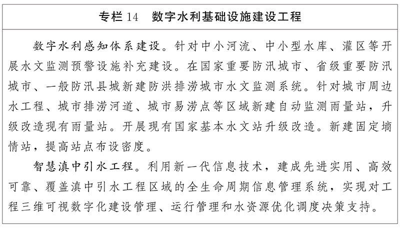 數(shù)字水利基礎(chǔ)設(shè)施建設(shè)。綜合運用地基水文水質(zhì)監(jiān)測等手段,構(gòu)建雨情、水情、工情、水資源、水環(huán)境、水生態(tài)等水信息的感知網(wǎng)絡(luò)。建設(shè)數(shù)字水利大數(shù)據(jù)中心,形成數(shù)據(jù)資產(chǎn)管理體系,建設(shè)智慧水利調(diào)度與監(jiān)管、智慧防汛抗旱等系統(tǒng),推動數(shù)據(jù)資源跨部門共享交換。