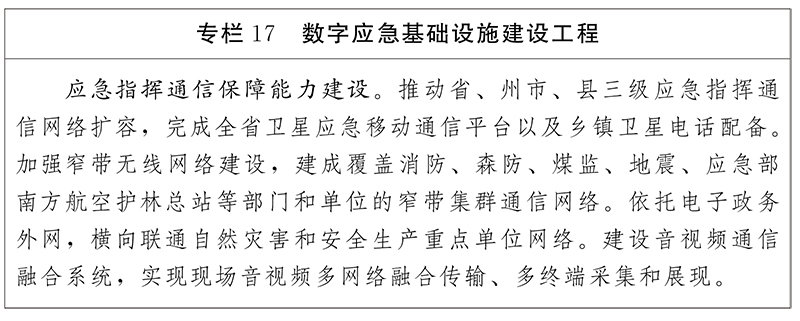 打造智慧應(yīng)急基礎(chǔ)設(shè)施。加快應(yīng)急指揮通信網(wǎng)絡(luò)升級改造,實現(xiàn)多部門協(xié)同、各層級貫通。融合物聯(lián)感知、視頻感知等手段,實現(xiàn)對安全生產(chǎn)高危行業(yè)領(lǐng)域立體化、無盲區(qū)動態(tài)監(jiān)測。建立全省應(yīng)急指揮信息系統(tǒng),加快推進區(qū)域性全災(zāi)種應(yīng)急指揮中心建設(shè)。打造覆蓋全省的應(yīng)急廣播體系。