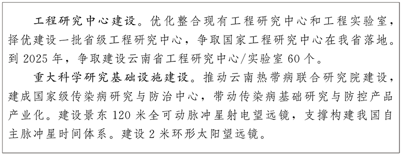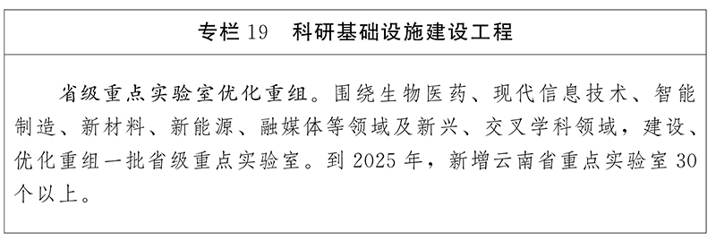 ——創(chuàng)新基礎(chǔ)設(shè)施建設(shè)取得新成效。圍繞高原特色農(nóng)業(yè)、有色冶金、稀貴金屬、能源、煙草、生物醫(yī)藥等優(yōu)勢產(chǎn)業(yè)領(lǐng)域,新建一批國家級、省級重點實驗室以及技術(shù)創(chuàng)新中心、工程研究中心,全省科研創(chuàng)新支撐能力顯著增強。