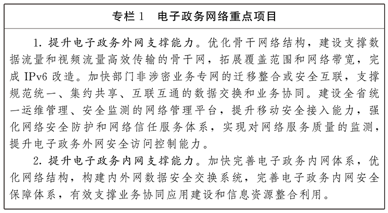 建成“橫向到邊、縱向到底”、支持IPv6(互聯(lián)網(wǎng)協(xié)議第六版)的電子政務(wù)外網(wǎng),同步建設(shè)網(wǎng)絡(luò)安全基礎(chǔ)設(shè)施,形成全省架構(gòu)統(tǒng)一、運(yùn)行高效、安全可靠、彈性調(diào)度的新型電子政務(wù)外網(wǎng)體系,推進(jìn)5G(第五代移動通信技術(shù))、區(qū)塊鏈等新技術(shù)在電子政務(wù)外網(wǎng)領(lǐng)域應(yīng)用,有效支撐跨層級、跨區(qū)域、跨部門的網(wǎng)絡(luò)互通、數(shù)據(jù)共享、應(yīng)用協(xié)同。拓展電子政務(wù)外網(wǎng)覆蓋范圍、加快網(wǎng)絡(luò)帶寬擴(kuò)容,逐步實現(xiàn)萬兆到州市、千兆到縣市區(qū)、百兆到鄉(xiāng)鎮(zhèn)(街道)全覆蓋,村(社區(qū))按需接入,2025年底實現(xiàn)80%行政村覆蓋;推動各地各部門按照“應(yīng)接盡接”原則接入電子政務(wù)外網(wǎng)。提升電子政務(wù)內(nèi)網(wǎng)支撐能力,對政務(wù)內(nèi)網(wǎng)骨干鏈路帶寬進(jìn)行擴(kuò)容,按需開展縣級以下部門安全接入政務(wù)內(nèi)網(wǎng),完善電子政務(wù)內(nèi)網(wǎng)綜合運(yùn)維管理體系,提升運(yùn)維保障能力。強(qiáng)化電子政務(wù)網(wǎng)絡(luò)綜合安全防護(hù),健全統(tǒng)一信任服務(wù)體系,推進(jìn)電子政務(wù)內(nèi)網(wǎng)、外網(wǎng)間數(shù)據(jù)安全交換。加快推進(jìn)部門業(yè)務(wù)專網(wǎng)(含國家部委業(yè)務(wù)專網(wǎng)的省級及以下部分)向電子政務(wù)內(nèi)網(wǎng)、外網(wǎng)遷移整合或安全互聯(lián)。