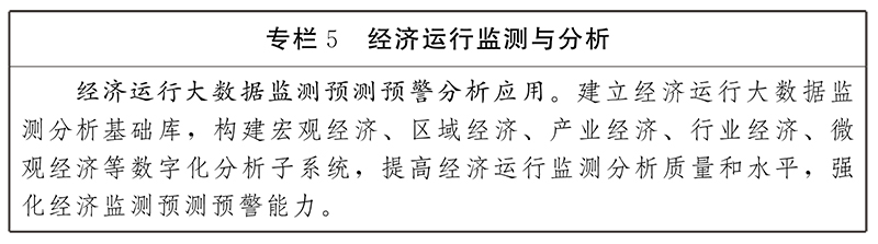 加快政府經(jīng)濟(jì)運行調(diào)節(jié)體系建設(shè)。圍繞生產(chǎn)、消費、投資、就業(yè)、財政、金融、物流、能源等經(jīng)濟(jì)運行重點領(lǐng)域,推進(jìn)經(jīng)濟(jì)運行數(shù)據(jù)采集、治理標(biāo)準(zhǔn)化建設(shè),加快市場主體、生產(chǎn)要素、宏觀政策、市場競爭、資源環(huán)境等基礎(chǔ)數(shù)據(jù)匯聚,建立經(jīng)濟(jì)運行大數(shù)據(jù)分析計算模擬等模型,開展經(jīng)濟(jì)運行分析和預(yù)判,分級構(gòu)建決策指揮系統(tǒng),為宏觀調(diào)控、產(chǎn)業(yè)政策、風(fēng)險處置等提供決策支撐。