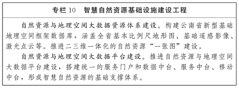 推動自然資源數(shù)字化管理。結(jié)合“多規(guī)合一”成果,建設(shè)全省統(tǒng)一的自然資源與地理空間大數(shù)據(jù)平臺,提供時空基準(zhǔn)和“一張圖”服務(wù)。完善現(xiàn)有時空數(shù)據(jù)資源,規(guī)范云南省時空數(shù)據(jù)基準(zhǔn),建立時空數(shù)據(jù)管理和更新維護(hù)體系。建設(shè)自然資源全生命周期智慧管控體系,發(fā)展自然資源調(diào)查監(jiān)測評價、自然資源資產(chǎn)管理、國土空間規(guī)劃與用途管制等自然資源管理服務(wù)應(yīng)用。