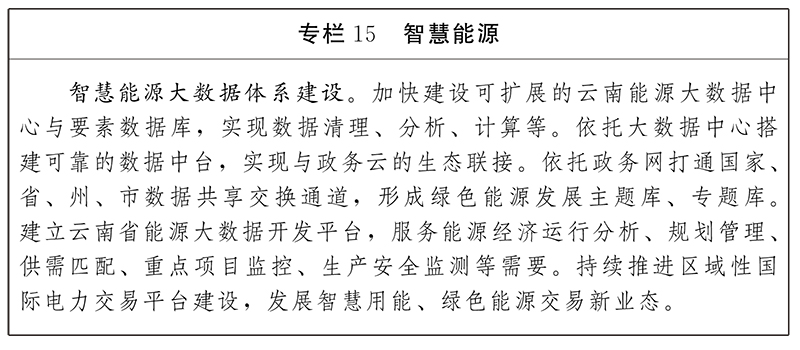 推動智慧能源大數(shù)據(jù)采集開發(fā)利用。建設(shè)聯(lián)通國家、省、州、市有關(guān)部門以及電、煤、油、氣等有關(guān)企業(yè)的能源數(shù)據(jù)傳輸網(wǎng)絡(luò),建設(shè)可擴(kuò)展的云南綠色能源大數(shù)據(jù)中心,支撐能源數(shù)據(jù)應(yīng)用建設(shè)。打造“互聯(lián)網(wǎng)+能源”公共服務(wù),提升智慧用能等一站式服務(wù)水平。建立覆蓋能源生產(chǎn)、流通、消費全鏈條的能源監(jiān)督管理網(wǎng)絡(luò)體系,支撐政府開展能源規(guī)劃決策、能源宏觀調(diào)度、能源安全保障、能源產(chǎn)業(yè)結(jié)構(gòu)調(diào)整等。