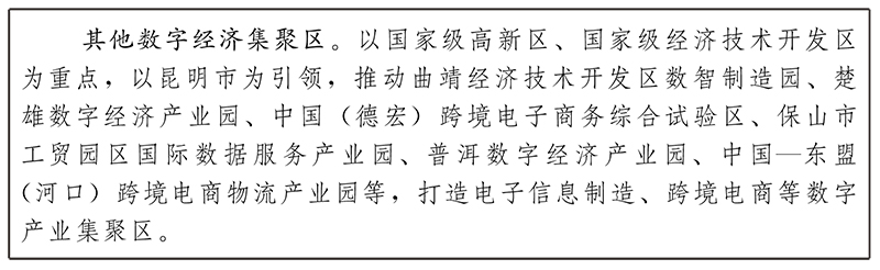 面向南亞東南亞輻射中心數(shù)字樞紐初步建成。爭取昆明區(qū)域性國際通信業(yè)務(wù)出入口局升級為全業(yè)務(wù)局,建成昆明國家級互聯(lián)網(wǎng)骨干直聯(lián)點。互聯(lián)網(wǎng)國際出口帶寬進(jìn)一步擴(kuò)容。數(shù)字經(jīng)濟(jì)“走出去”取得顯著成效,數(shù)字技術(shù)、數(shù)字貿(mào)易、數(shù)字金融、數(shù)字人文交流等領(lǐng)域與周邊國家合作進(jìn)一步加深,跨國界、跨地域的數(shù)字經(jīng)濟(jì)合作更加活躍。