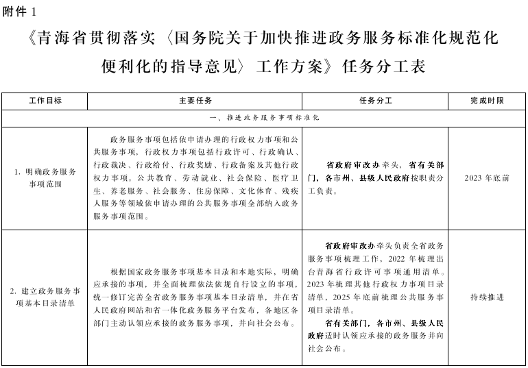 附件:1.《青海省貫徹落實〈國務院關于加快推進政務服務標準化規(guī)范化便利化的指導意見〉工作方案》任務分工表