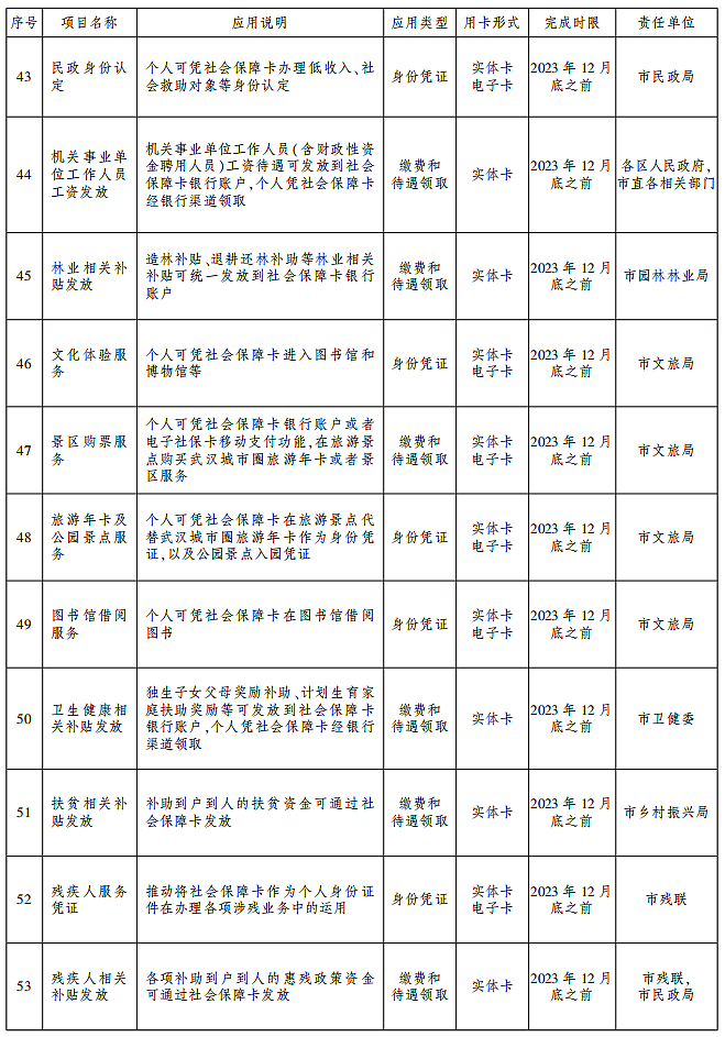 2.加快城市交通出行用卡。鞏固提升社會(huì)保障卡加載“武漢通”功能優(yōu)勢(shì),深化社會(huì)保障卡在地鐵、公交、輪渡等城市公共交通領(lǐng)域的應(yīng)用,推動(dòng)武漢城市圈其他城市實(shí)現(xiàn)持卡群眾交通出行“一卡通”。