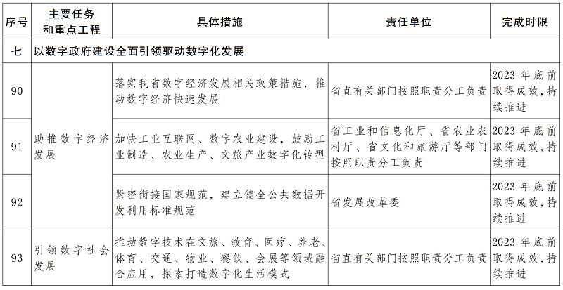 以政府?dāng)?shù)字化轉(zhuǎn)型為牽引,帶動(dòng)傳統(tǒng)行業(yè)數(shù)字化改造,探索通過(guò)數(shù)據(jù)要素資源的開發(fā)、流通和利用,培育經(jīng)濟(jì)發(fā)展新動(dòng)能。落實(shí)我省數(shù)字經(jīng)濟(jì)發(fā)展相關(guān)政策措施,推動(dòng)數(shù)字經(jīng)濟(jì)快速發(fā)展。針對(duì)行業(yè)和企業(yè)發(fā)展需求,加強(qiáng)數(shù)字化服務(wù)供給,促進(jìn)打造優(yōu)質(zhì)營(yíng)商環(huán)境。加快工業(yè)互聯(lián)網(wǎng)、數(shù)字農(nóng)業(yè)建設(shè),鼓勵(lì)工業(yè)制造、農(nóng)業(yè)生產(chǎn)、文旅產(chǎn)業(yè)數(shù)字化轉(zhuǎn)型。緊密銜接國(guó)家規(guī)范,建立健全公共數(shù)據(jù)開發(fā)利用標(biāo)準(zhǔn)規(guī)范,探索政府?dāng)?shù)據(jù)和社會(huì)數(shù)據(jù)的匯集、流通、交易,壯大數(shù)據(jù)服務(wù)產(chǎn)業(yè),釋放數(shù)據(jù)紅利推動(dòng)數(shù)字經(jīng)濟(jì)發(fā)展。完善數(shù)字經(jīng)濟(jì)治理體系,把監(jiān)管和治理貫穿創(chuàng)新、生產(chǎn)、經(jīng)營(yíng)、投資等全過(guò)程,引導(dǎo)數(shù)字經(jīng)濟(jì)良性發(fā)展。
