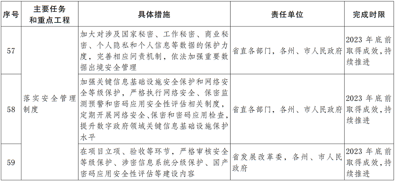 4.基礎(chǔ)設(shè)施體系。統(tǒng)籌集約建設(shè)統(tǒng)一政務(wù)云,承載各類政務(wù)應(yīng)用系統(tǒng);升級(jí)完善電子政務(wù)外網(wǎng),實(shí)現(xiàn)省、州市、縣、鄉(xiāng)、村五級(jí)全覆蓋和各地各部門全部接入,提供集約高效、安全穩(wěn)定、按需使用的計(jì)算、存儲(chǔ)、網(wǎng)絡(luò)等信息基礎(chǔ)設(shè)施。