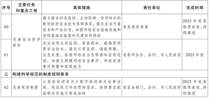 到2025年,全省數(shù)字政府體系框架基本完善、統(tǒng)籌協(xié)調(diào)機(jī)制建立健全,政府?dāng)?shù)字化履職能力、安全保障、制度規(guī)則、數(shù)據(jù)資源、平臺(tái)支撐等數(shù)字政府體系框架基本形成,“三個(gè)一”綜合應(yīng)用系統(tǒng)有效運(yùn)行,建成一批人民群眾滿意度高、社會(huì)效益顯著的標(biāo)志性成果。