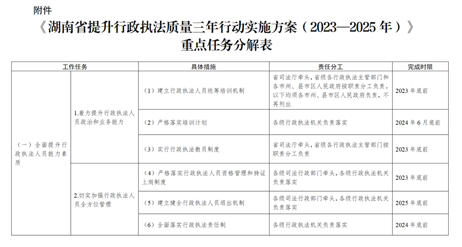 附件:《湖南省提升行政執(zhí)法質(zhì)量三年行動(dòng)實(shí)施方案(2023—2025年)》重點(diǎn)任務(wù)分解表