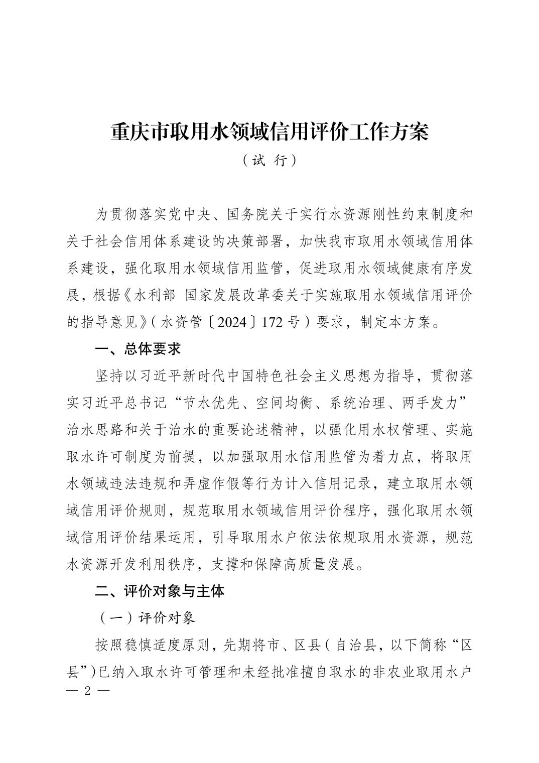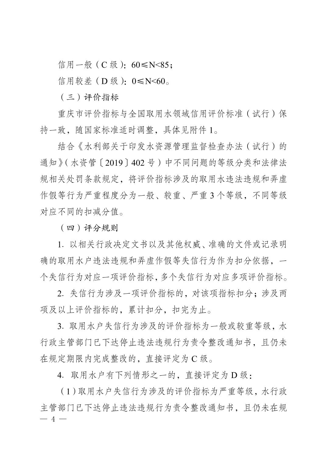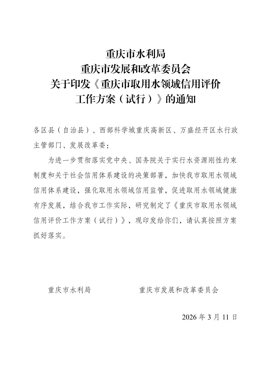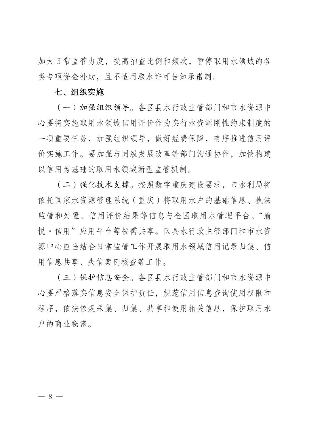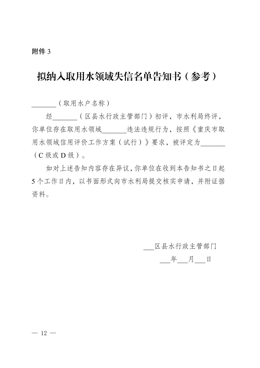 重慶市水利局 重慶市發(fā)展和改革委員會關(guān)于印發(fā)《重慶市取用水領(lǐng)域信用評價工作方案(試行)》的通知 無 分享11 0 全文下載:重慶市水利局 重慶市發(fā)展和改革委員會關(guān)于印發(fā)《重慶市取用水領(lǐng)域信用評價工作方案(試行)》的通知.pdf