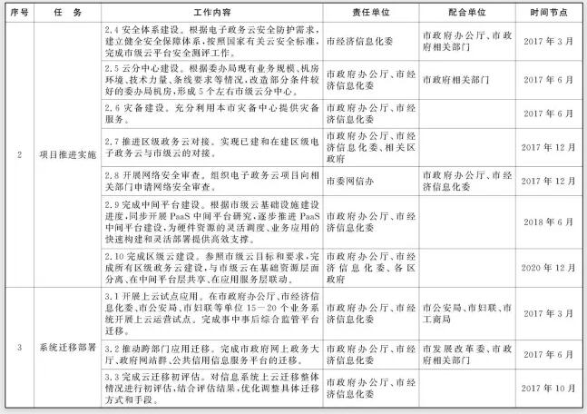 2017年6月前,完成市政府網(wǎng)上政務(wù)大廳、政府網(wǎng)站群、公共信用信息服務(wù)平臺(tái)的遷移。