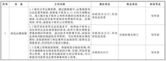 2017年2月前,完成電子政務(wù)云運(yùn)營(yíng)和管理、電子政務(wù)云應(yīng)用建設(shè)、遷移和部署以及云安全體系建設(shè)等標(biāo)準(zhǔn)和規(guī)范的制定,完成突發(fā)事件應(yīng)急處置預(yù)案編制。