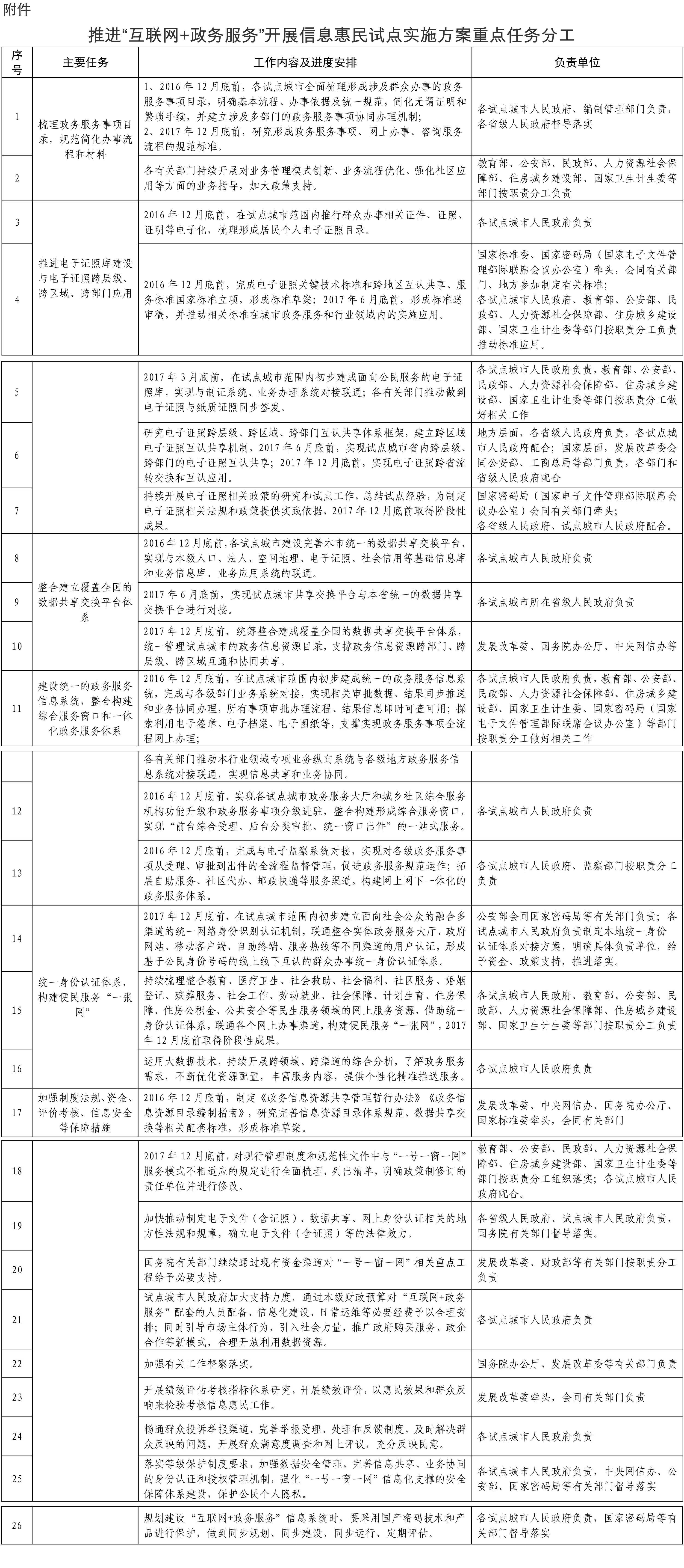 附件:推進“互聯(lián)網+政務服務”開展信息惠民試點實施方案重點任務分工