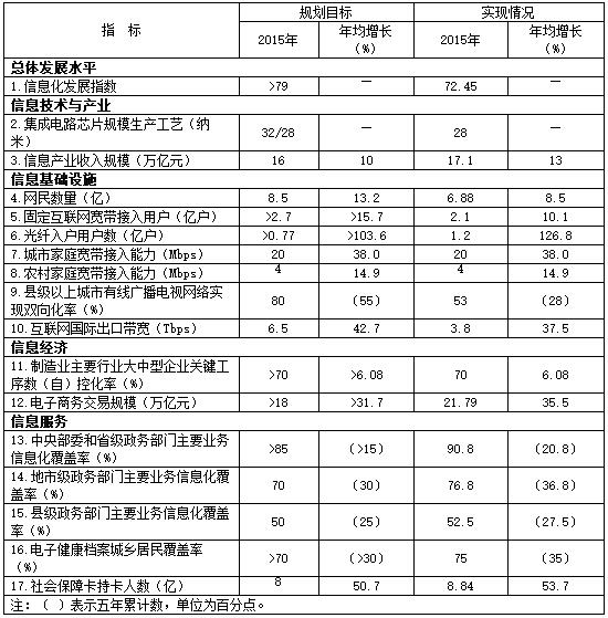 “十三五”信息化發(fā)展主要指標(biāo)