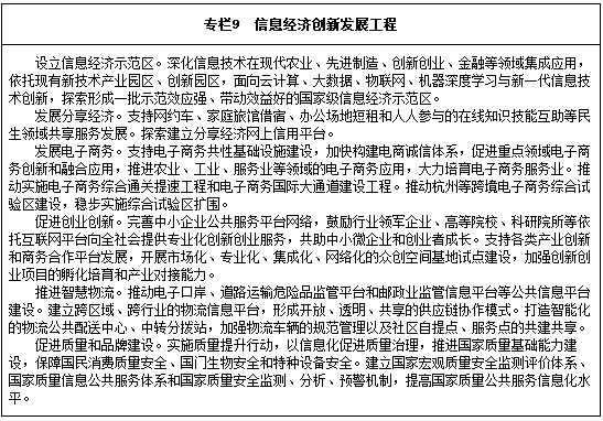 信息經(jīng)濟(jì)全面發(fā)展。信息經(jīng)濟(jì)新產(chǎn)業(yè)、新業(yè)態(tài)不斷成長,信息消費規(guī)模達(dá)到6萬億元,電子商務(wù)交易規(guī)模超過38萬億元,信息化和工業(yè)化融合發(fā)展水平進(jìn)一步提高,重點行業(yè)數(shù)字化、網(wǎng)絡(luò)化、智能化取得明顯進(jìn)展,網(wǎng)絡(luò)化協(xié)同創(chuàng)新體系全面形成。打破信息壁壘和孤島,實現(xiàn)各部門業(yè)務(wù)系統(tǒng)互聯(lián)互通和信息跨部門跨層級共享共用,公共數(shù)據(jù)資源開放共享體系基本建立,面向企業(yè)和公民的一體化公共服務(wù)體系基本建成,電子政務(wù)推動公共服務(wù)更加便捷均等。電信普遍服務(wù)補償機(jī)制進(jìn)一步完善,網(wǎng)絡(luò)扶貧成效明顯,寬帶網(wǎng)絡(luò)覆蓋90%以上的貧困村。