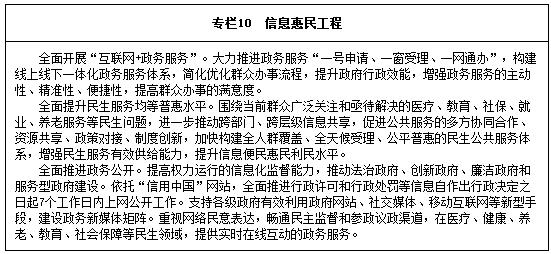 拓展民生服務(wù)渠道。深入實施信息惠民工程,加快推進(jìn)信息惠民國家試點城市建設(shè)。全面開展“互聯(lián)網(wǎng)+政務(wù)服務(wù)”,大力推進(jìn)政務(wù)服務(wù)“一號申請、一窗受理、一網(wǎng)通辦”,構(gòu)建方便快捷、公平普惠、優(yōu)質(zhì)高效的政務(wù)服務(wù)信息體系,簡化群眾辦事環(huán)節(jié),讓信息多跑路、群眾少跑腿。全面推進(jìn)政務(wù)公開,加強(qiáng)政民互動交流,建立政府同群眾交流溝通的互聯(lián)網(wǎng)平臺,推動各級政府部門通過互聯(lián)網(wǎng)了解群眾,貼近群眾,為群眾排憂解難。基于互聯(lián)網(wǎng)建立發(fā)揚人民民主、接受人民監(jiān)督的新渠道,促進(jìn)政府公共服務(wù)“一站式”網(wǎng)上辦理及行政權(quán)力全流程監(jiān)督。