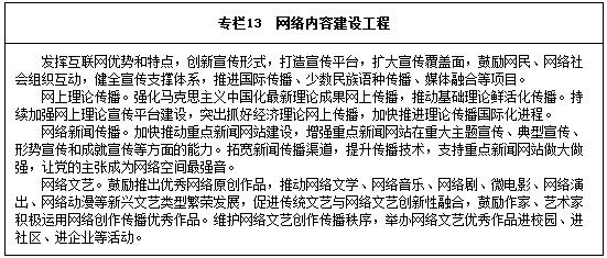 大力發(fā)展網(wǎng)絡(luò)文化市場。規(guī)范網(wǎng)絡(luò)文化傳播秩序,綜合利用法律、行政、經(jīng)濟(jì)和行業(yè)自律等手段,完善網(wǎng)絡(luò)文化服務(wù)準(zhǔn)入和退出機(jī)制。加大網(wǎng)絡(luò)文化執(zhí)法力度,發(fā)展網(wǎng)絡(luò)行業(yè)協(xié)會,推動網(wǎng)絡(luò)社會化治理。大力培育網(wǎng)絡(luò)文化知識產(chǎn)權(quán),嚴(yán)厲打擊網(wǎng)絡(luò)盜版行為,提升網(wǎng)絡(luò)文化產(chǎn)業(yè)輸出能力。