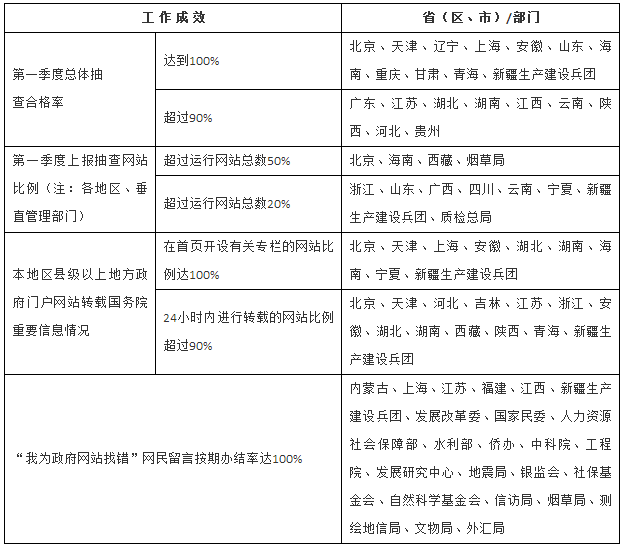 2017年第一季度網(wǎng)站監(jiān)管工作成效明顯的地區(qū)和部門