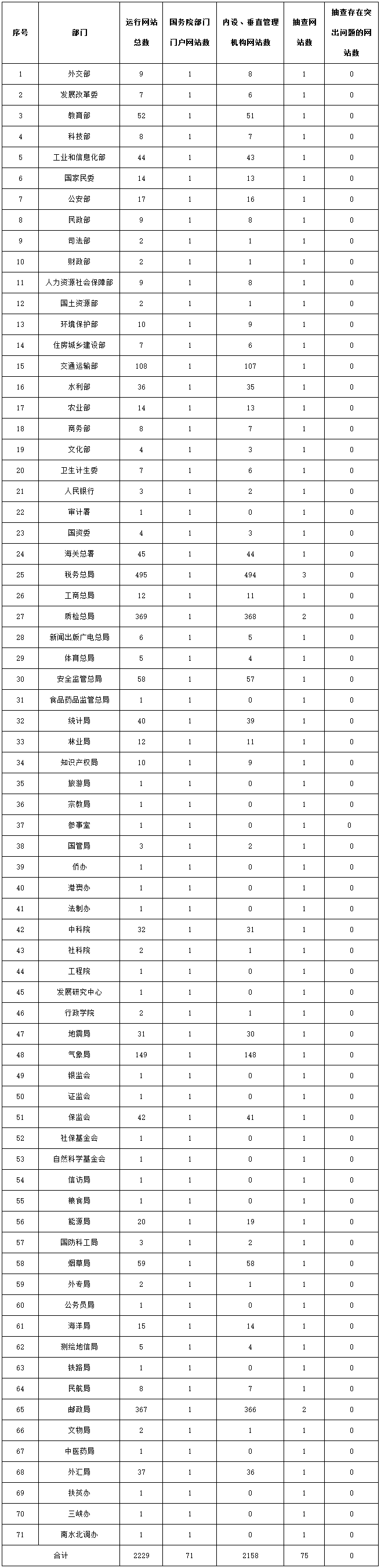 國務(wù)院部門及其內(nèi)設(shè)、垂直管理機(jī)構(gòu)政府網(wǎng)站運(yùn)行和抽查情況