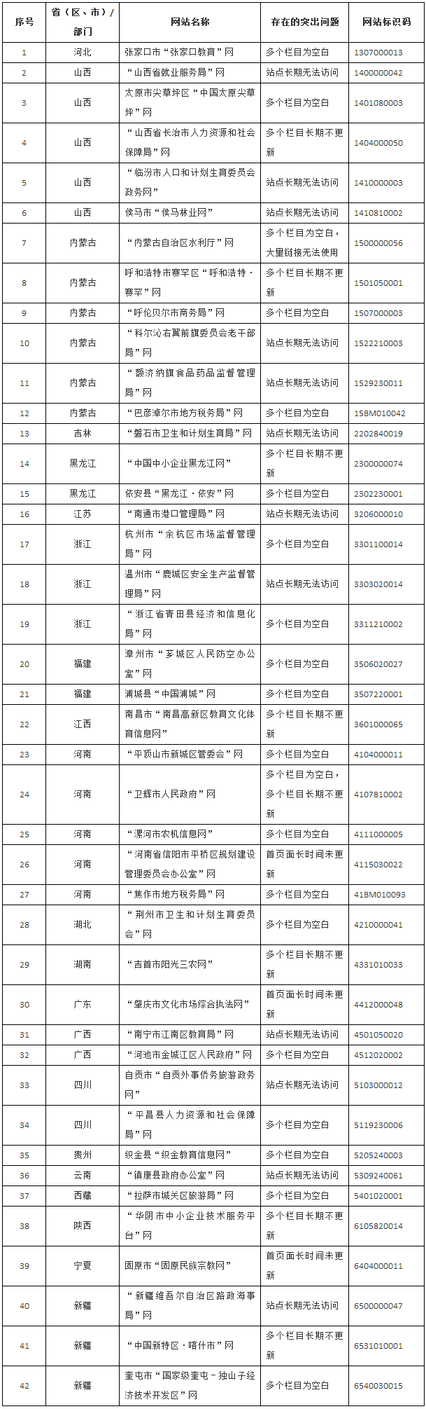 各地區(qū)、各部門上報(bào)的合格網(wǎng)站中發(fā)現(xiàn)存在突出問題的政府網(wǎng)站名單