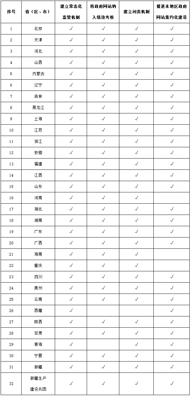 各?。▍^(qū)、市)政府網(wǎng)站有關(guān)制度建設(shè)情況