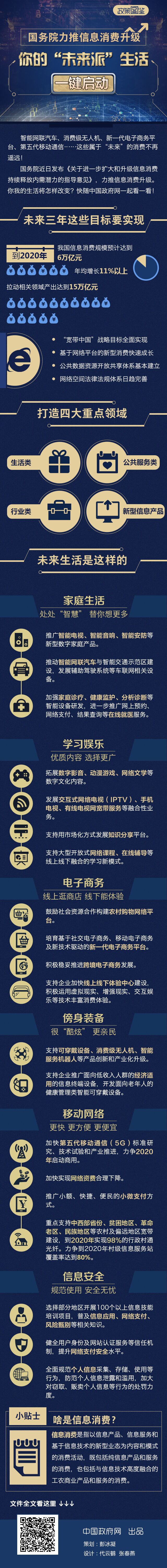 國(guó)務(wù)院近日發(fā)布《關(guān)于進(jìn)一步擴(kuò)大和升級(jí)信息消費(fèi)持續(xù)釋放內(nèi)需潛力的指導(dǎo)意見》,力推信息消費(fèi)升級(jí)。你我的生活將怎樣改變?快隨中國(guó)政府網(wǎng)一起看一看!