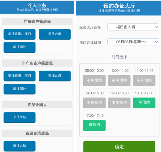 微信城市服務-深圳出入境業(yè)務辦理-預約系統(來源:微信城市服務)