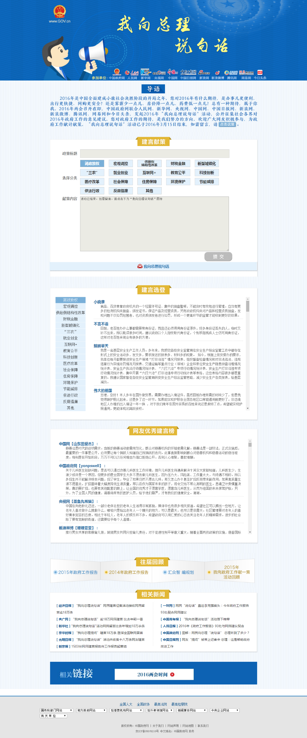"我向總理說句話"活動主頁(來源:中國政府網)