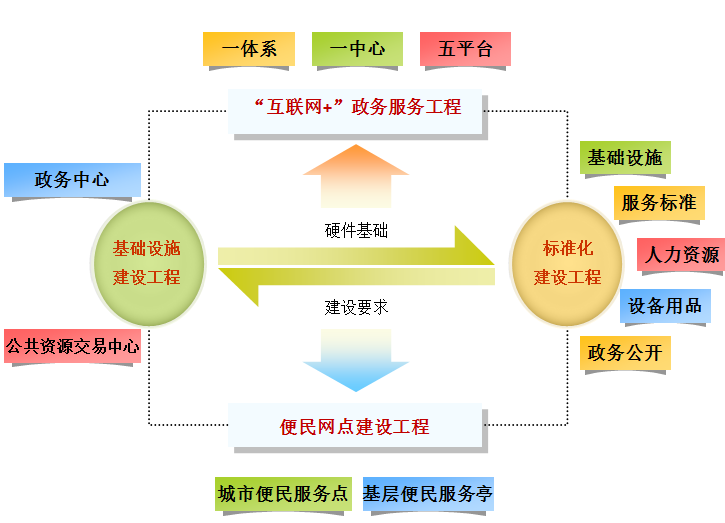 圖4 四大政務(wù)升級(jí)工程內(nèi)容與關(guān)系圖