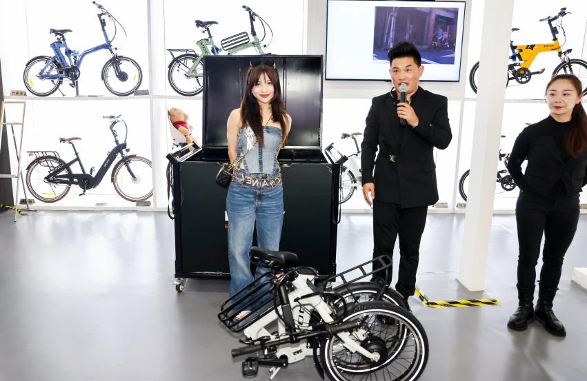 發(fā)布會當天除了燃爆全場的開場熱舞和一系列的精彩魔術(shù)表演,也邀請到BESV中國區(qū)的首席體驗官,酷愛戶外的運動達人---金剛芭比EVA!在她挑戰(zhàn)魔術(shù)師的過程中,也向我們展示了VOTANI F3僅需的極致收納空間。同時EVA在現(xiàn)場也向我們分享了這款莫蘭迪時尚配色的F3,在使用上的小技巧和動力長續(xù)航上的優(yōu)勢!