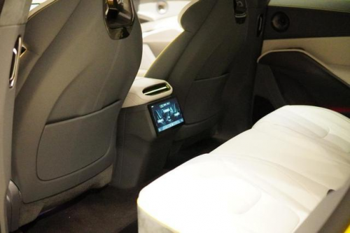 依托于3019mm的超長(zhǎng)軸距,Eletre后排空間表現(xiàn)可圈可點(diǎn),外加大面積Alcantara材質(zhì),舒適性可以給個(gè)好評(píng)。身高175cm,坐進(jìn)后排頭部和膝部有較大的空間盈余,純平地臺(tái)的設(shè)計(jì)也讓左右移動(dòng)變得更加便捷。