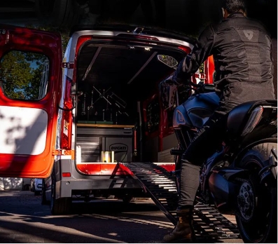 而且它的內(nèi)部尺寸為3400*1800*1780mm,內(nèi)部空間近11m3,非常寬敞,不僅能滿足騎士們在車內(nèi)自如行走,還可以輕松放置機車、露營裝備和改裝配件等等,稱得上賽道馳騁后的機車服務(wù)站、周末露營狂歡的儲備倉。此外,這款車還配備專用停放支架和緊固裝置,能給機車全方位的防護,再加上內(nèi)置的多功能服務(wù)臺和懸掛式置物架,還能搞定機車改裝升級和現(xiàn)場維修,讓騎士們的機車之旅更無憂。