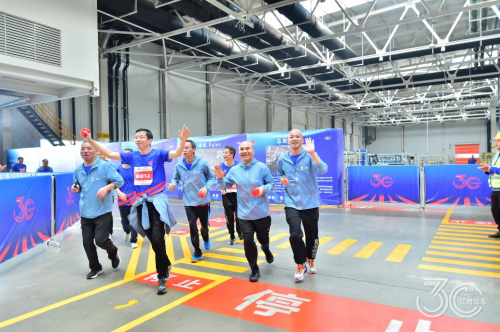 并與南昌縣委副書 記、縣長(zhǎng)、小藍(lán)經(jīng)濟(jì)技術(shù)開發(fā)區(qū)黨工委副書 記、管委會(huì)主任賈彧超,南昌市國資委黨委委員、副主任周仁斌,南昌市國資委黨委委員、南昌市紀(jì)委市監(jiān)委駐市國資委紀(jì)檢監(jiān)察組組長(zhǎng)黃少林,南昌市國資委黨委委員、副主任杜小華,江鈴集團(tuán)黨委副書 記、總經(jīng)理萬建榮,江鈴股份總裁熊春英,福特中國商用車事業(yè)部副總經(jīng)理李平暉,一起為比賽鳴笛發(fā)令,“2023江鈴汽車智慧工廠穿越跑”激情開賽。