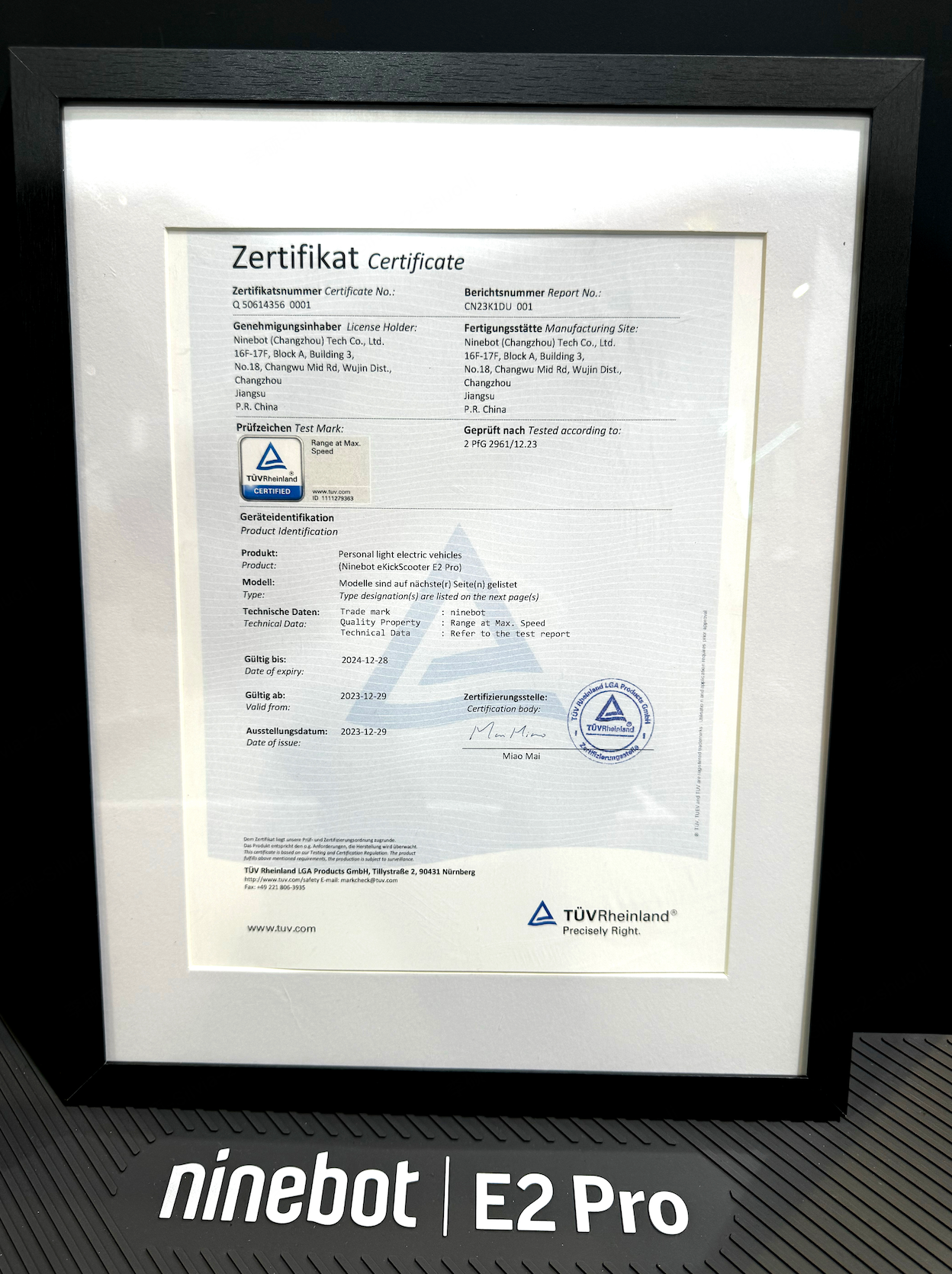 圖:九號電動滑板車E2 Pro 獲TUV 萊茵「全速真續(xù)航」認證