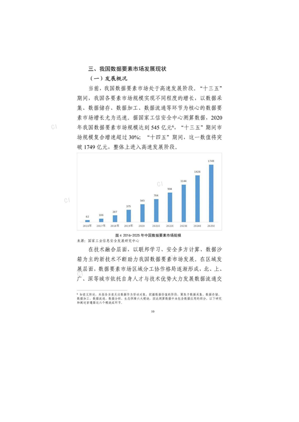 國家工業(yè)信息安全發(fā)展研究中心通過專家訪談、企業(yè)調(diào)研、案頭研究等方式開展數(shù)據(jù)要素市場相關(guān)研究,結(jié)合自有的逾5000家企業(yè)大數(shù)據(jù)案例庫對報(bào)告界定的產(chǎn)值規(guī)模進(jìn)行了測算和分析,在報(bào)告中提出了數(shù)據(jù)要素及數(shù)據(jù)要素市場的邊界,梳理了國內(nèi)外數(shù)據(jù)要素市場發(fā)展現(xiàn)狀,重點(diǎn)從市場概況、政策脈絡(luò)、產(chǎn)業(yè)圖譜及市場運(yùn)行機(jī)制等角度,并結(jié)合相應(yīng)的產(chǎn)值規(guī)模、技術(shù)水平、產(chǎn)品和服務(wù)、商業(yè)模式等情況,闡釋了我國數(shù)據(jù)要素市場的發(fā)展現(xiàn)狀,分析了現(xiàn)階段我國數(shù)據(jù)要素市場存在的問題及未來發(fā)展趨勢,提出了對策與建議。