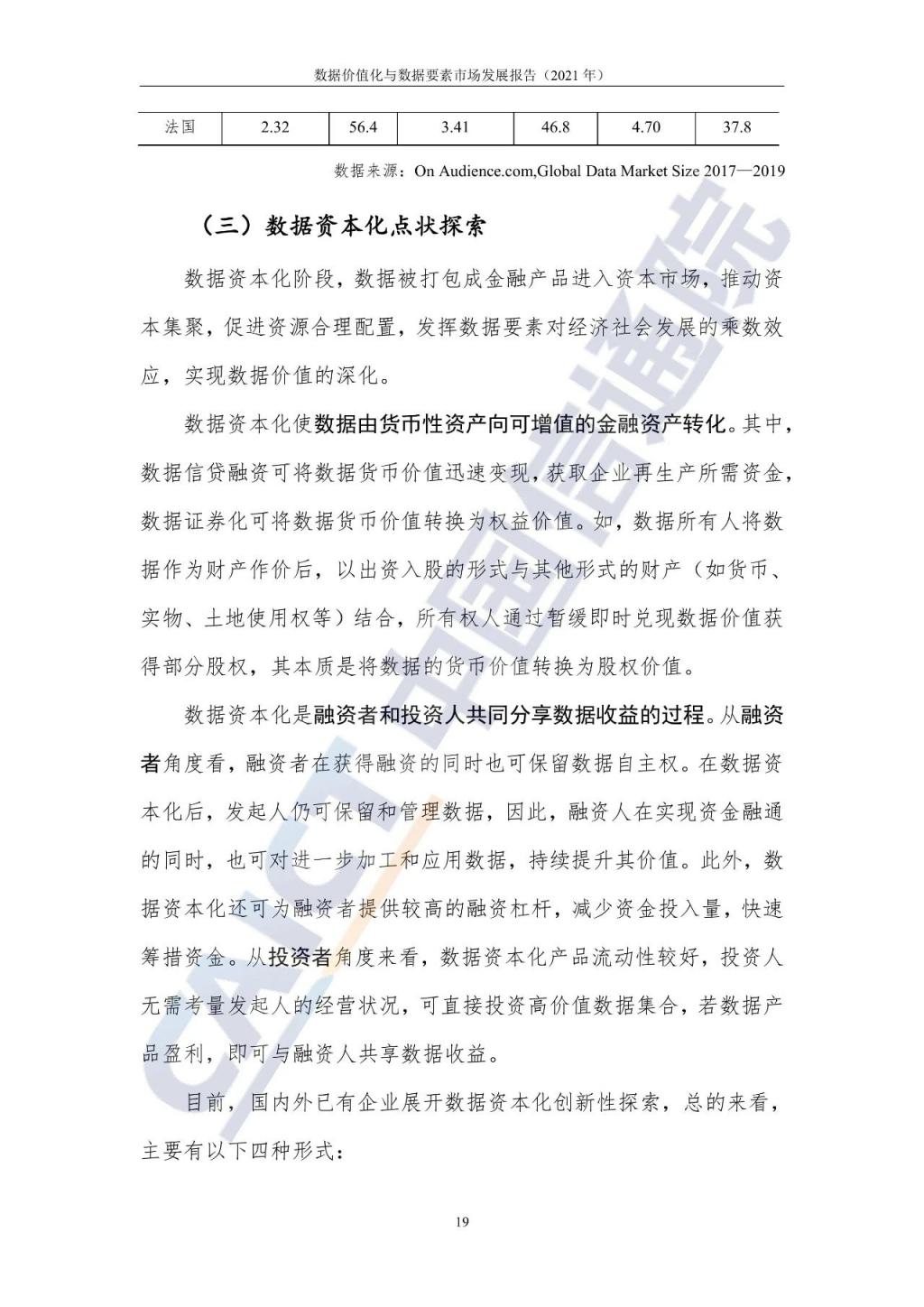 報(bào)告建立了數(shù)據(jù)價(jià)值化的 " 三化 " 框架,即數(shù)據(jù)資源化、數(shù)據(jù)資產(chǎn)化、數(shù)據(jù)資本化。目前全球尚處于數(shù)據(jù)資源化的初級(jí)階段,數(shù)據(jù)采集、數(shù)據(jù)標(biāo)注有望成為撬動(dòng)產(chǎn)業(yè)規(guī)模發(fā)展的新引擎。我國(guó)數(shù)據(jù)要素市場(chǎng)正在形成包含數(shù)據(jù)交易主體、數(shù)據(jù)交易手段、數(shù)據(jù)交易中介、數(shù)據(jù)交易監(jiān)管的 " 四位一體 " 發(fā)展格局。