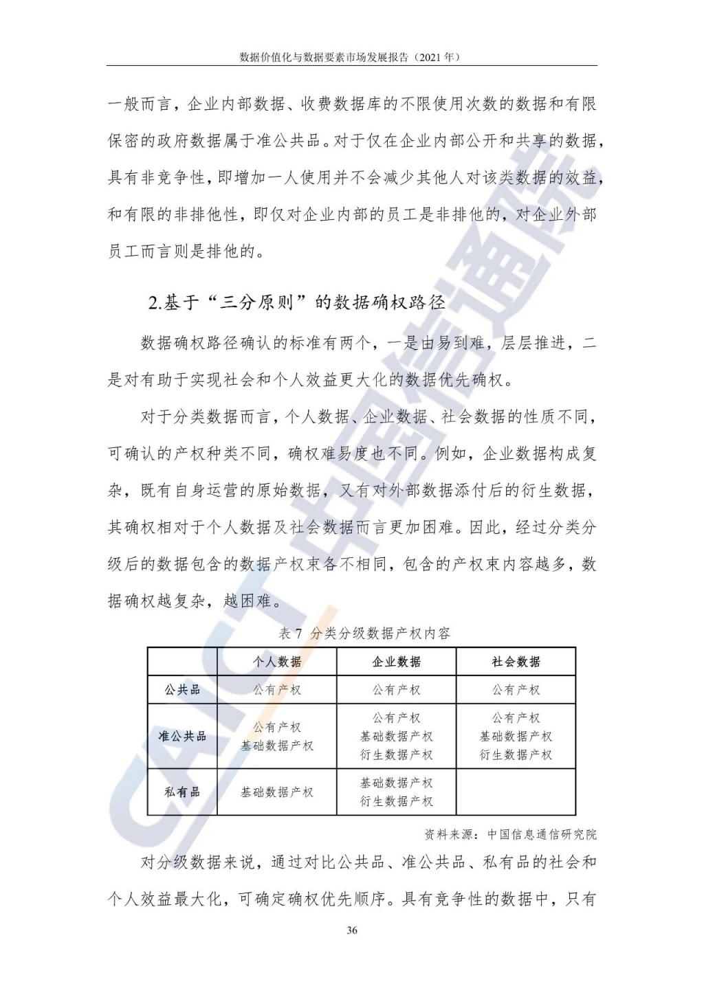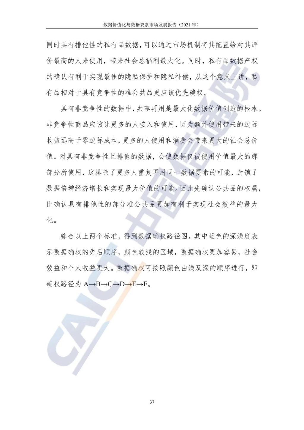 針對(duì)數(shù)據(jù)確權(quán)及定價(jià)等關(guān)鍵問(wèn)題,報(bào)告從經(jīng)濟(jì)學(xué)視角出發(fā),根據(jù)數(shù)據(jù)確權(quán) " 三分原則 ",建立了數(shù)據(jù)確權(quán)路徑圖,構(gòu)建了從不完全市場(chǎng)到成熟市場(chǎng)數(shù)據(jù)定價(jià)模型,為推動(dòng)數(shù)據(jù)要素流轉(zhuǎn)、挖掘數(shù)據(jù)價(jià)值、做大做強(qiáng)數(shù)字經(jīng)濟(jì)提供重要參考。