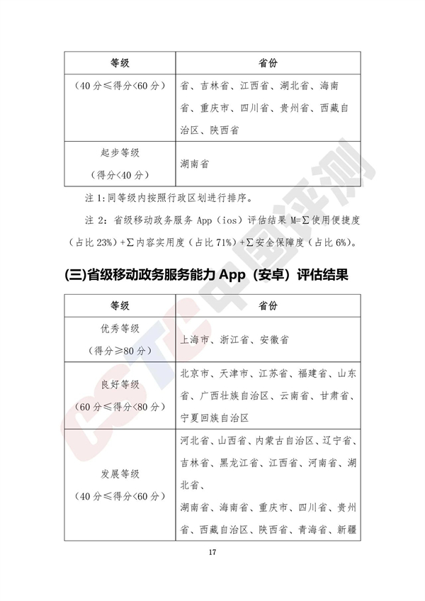 (三)2021年省級移動政務(wù)服務(wù)能力評估結(jié)果——App(安卓版)