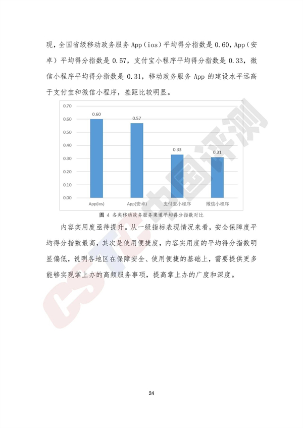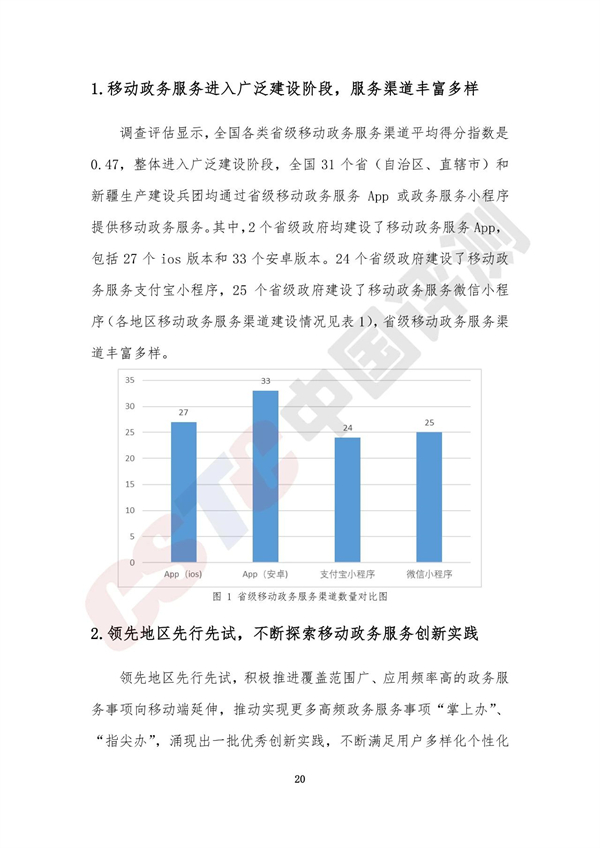 調(diào)查評估顯示,全國各類省級移動政務(wù)服務(wù)渠道平均得分指數(shù)是0.47,整體進入廣泛建設(shè)階段,全國31個省(自治區(qū)、直轄市)和新疆生產(chǎn)建設(shè)兵團均通過省級移動政務(wù)服務(wù)App或政務(wù)服務(wù)小程序提供移動政務(wù)服務(wù)。