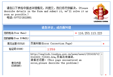 [2014特色評選]柳州市政府網(wǎng)站英文版榮獲"中國特色政府網(wǎng)站提名"獎