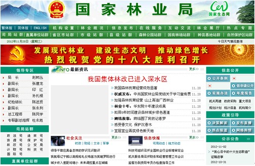 (1)創(chuàng)新網(wǎng)站建設(shè)理念,努力打造電子政府。理念創(chuàng)新是主導(dǎo)事業(yè)創(chuàng)新的首要因素。為樹立創(chuàng)新型政府網(wǎng)站理念,研究了國內(nèi)外電子政務(wù)和政府網(wǎng)站發(fā)展趨勢,并結(jié)合林業(yè)工作實(shí)際,以新理念新技術(shù)新產(chǎn)品應(yīng)用為基礎(chǔ),努力實(shí)現(xiàn)由服務(wù)部門向服務(wù)社會轉(zhuǎn)變,由被動應(yīng)付向主動出擊轉(zhuǎn)變,由數(shù)字林業(yè)向智慧林業(yè)轉(zhuǎn)變。推動中國林業(yè)網(wǎng)建