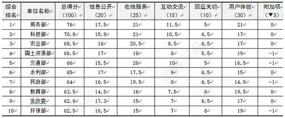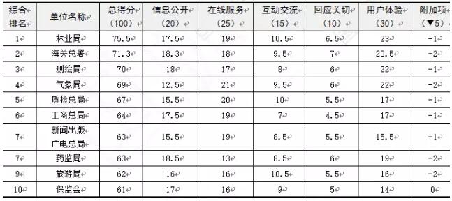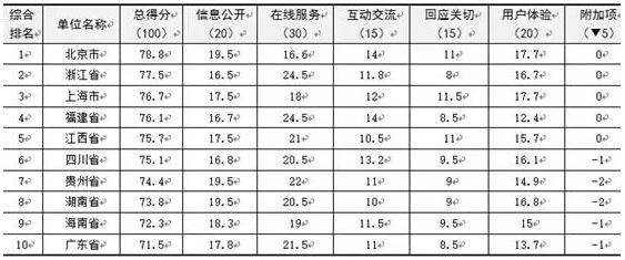 2016年中國政府網(wǎng)站發(fā)展領(lǐng)先單位排名結(jié)果如下: