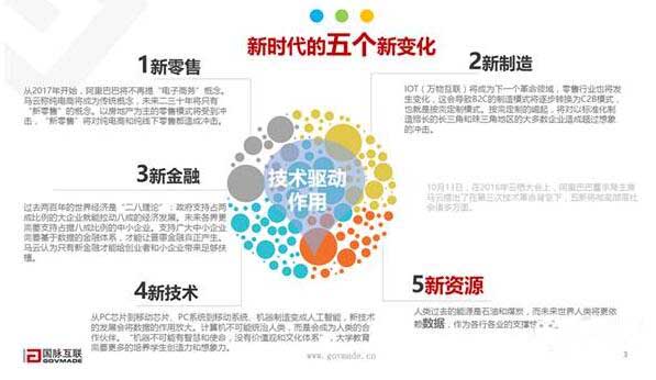 我認(rèn)為"互聯(lián)網(wǎng)+"時(shí)代是最好的時(shí)代,也是最壞的時(shí)代。為什么?因?yàn)樗堰^去的信息不對(duì)稱、信息流程環(huán)節(jié)多的情況全部打破,所以它是一個(gè)重構(gòu)的時(shí)代,不僅僅是對(duì)商業(yè)模式或價(jià)值流向、價(jià)值評(píng)估體系,甚至把組織體系、運(yùn)營(yíng)方式、服務(wù)模式、價(jià)值理念,包括決策體系和競(jìng)爭(zhēng)優(yōu)勢(shì)全面地進(jìn)行了改革和重構(gòu),所以這個(gè)重構(gòu)的力度是曾經(jīng)沒有的。關(guān)于這塊可以關(guān)注滴滴打車的運(yùn)營(yíng)模式、價(jià)值觀念,它的競(jìng)爭(zhēng)優(yōu)勢(shì)跟傳統(tǒng)的出租車公司完全不一樣,所以是一個(gè)重構(gòu)的時(shí)代。我認(rèn)為"互聯(lián)網(wǎng)+"這個(gè)新時(shí)代帶來了五個(gè)變化。第一,新零售。馬云提出未來的電商叫新零售,新零售是基于O2O的,是未來新的發(fā)展模式,可能會(huì)替代現(xiàn)在的零售行業(yè)。第二,新制造。在萬物互聯(lián)、IOT互聯(lián)、萬物互聯(lián)時(shí)代、新制造業(yè)以C2D為主。第三,新金融。以秒殺等方式對(duì)金融進(jìn)行辦理。第四,新技術(shù)。大家看到人工智能現(xiàn)在越來越發(fā)達(dá),應(yīng)用到各個(gè)領(lǐng)域。第五個(gè),新資源。新資源是什么?就是數(shù)據(jù)資源。所以圍繞數(shù)據(jù)資源和重構(gòu),我認(rèn)為互聯(lián)網(wǎng)有三個(gè)點(diǎn):它是重構(gòu)生態(tài)體系,是構(gòu)建治理的新模式,是創(chuàng)新模式的新供給。如果說信息化的本質(zhì)是改造和變革,"互聯(lián)網(wǎng)+"的本質(zhì)就是構(gòu)建一個(gè)全新的治理范式和新型的商業(yè)模式。