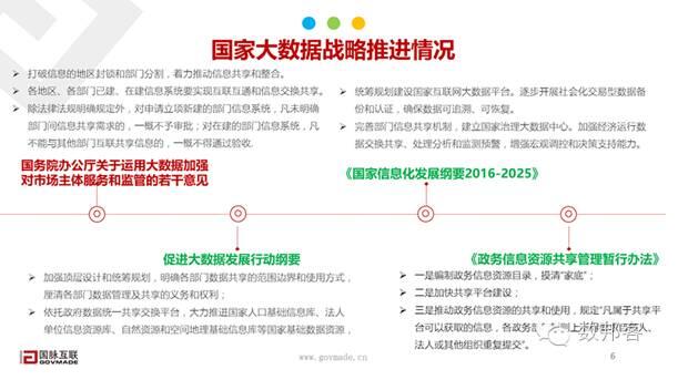 我記得習(xí)近平總書記有這么一段話,他認(rèn)為,互聯(lián)網(wǎng)時(shí)代的社會(huì)治理,由過去的單向管理轉(zhuǎn)變成了雙向互動(dòng),過去的線下要轉(zhuǎn)變到線上和線下融合。過去的單純的政府監(jiān)管向更加注重社會(huì)協(xié)同治理轉(zhuǎn)變。這三個(gè)轉(zhuǎn)變是"互聯(lián)網(wǎng)+"治理模式的新轉(zhuǎn)變。這樣把人、財(cái)、物全要素進(jìn)行了提煉,不斷的完善"互聯(lián)網(wǎng)+社會(huì)治理"的整體格局,打造共建、共治、共享的命運(yùn)共同體。李克強(qiáng)總理在貴州大數(shù)據(jù)會(huì)議特別提出,大數(shù)據(jù)讓中國(guó)與世界處于同一個(gè)起跑線上,從追趕同跑變成了領(lǐng)跑。這是非常重要的變革,我們要抓住這個(gè)機(jī)遇。另外,從去年的7月份到今年的9月份,國(guó)家在大數(shù)據(jù)戰(zhàn)略方面發(fā)布了四個(gè)文件,《關(guān)于運(yùn)用大數(shù)據(jù)加強(qiáng)對(duì)市場(chǎng)主體服務(wù)和監(jiān)管的若干意見》、《促進(jìn)大數(shù)據(jù)發(fā)展行動(dòng)綱要》、《國(guó)家信息化發(fā)展戰(zhàn)略綱要》和《政務(wù)信息資源共享管理暫行辦法》中特別提出,要建設(shè)國(guó)家互聯(lián)網(wǎng)大數(shù)據(jù)平臺(tái)、國(guó)家治理大數(shù)據(jù)中心等,這些內(nèi)容都涉及到基于大數(shù)據(jù)的國(guó)家戰(zhàn)略。