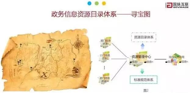 我們要去挖寶先要有一個尋寶圖,首先得知道要挖的這些寶藏,想要的數據是在哪些部門里面有,這個是政務信息資源目錄體系主要的定位,它充當了尋寶圖的作用。簡單來說,尋寶圖告訴你,你想要的數據在哪里。但是它又不具體存儲數據,也不是說它不是存儲的盒子,只是給你一個方向性的指引,告訴你想要的數據在哪里,這個部門有哪些數據,哪些數據是可以共享的,哪些數據是可以開放的。如果說你想要這個寶藏,就要進行到下一步,就是數據的交換,比如說通過搭建共享交換大平臺,將數據都存儲在平臺上,然后供各個部門來進行數據的交換。
