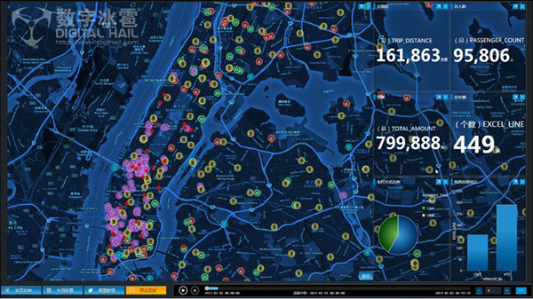 美國出租車數(shù)據(jù)可視化系統(tǒng):美國紐約市出租車數(shù)據(jù)可視化系統(tǒng)集成包括地理信息、GPS數(shù)據(jù)位置、數(shù)據(jù)統(tǒng)計、建筑物數(shù)據(jù)、攝像頭畫面等多種數(shù)據(jù)源。系統(tǒng)可實現(xiàn)數(shù)據(jù)統(tǒng)計分析的可視化、歷史數(shù)據(jù)回放,并支持二次開發(fā)、自動報警等功能,以更靈活更有針對性的系統(tǒng)幫助管理更高效。